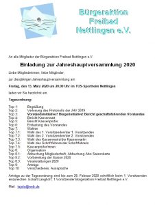 Jahreshauptversammlung 2020Gepostet in den Kategorien jahreshauptversammlung und veranstaltungen14.02.2020Frauke Tomescheit
